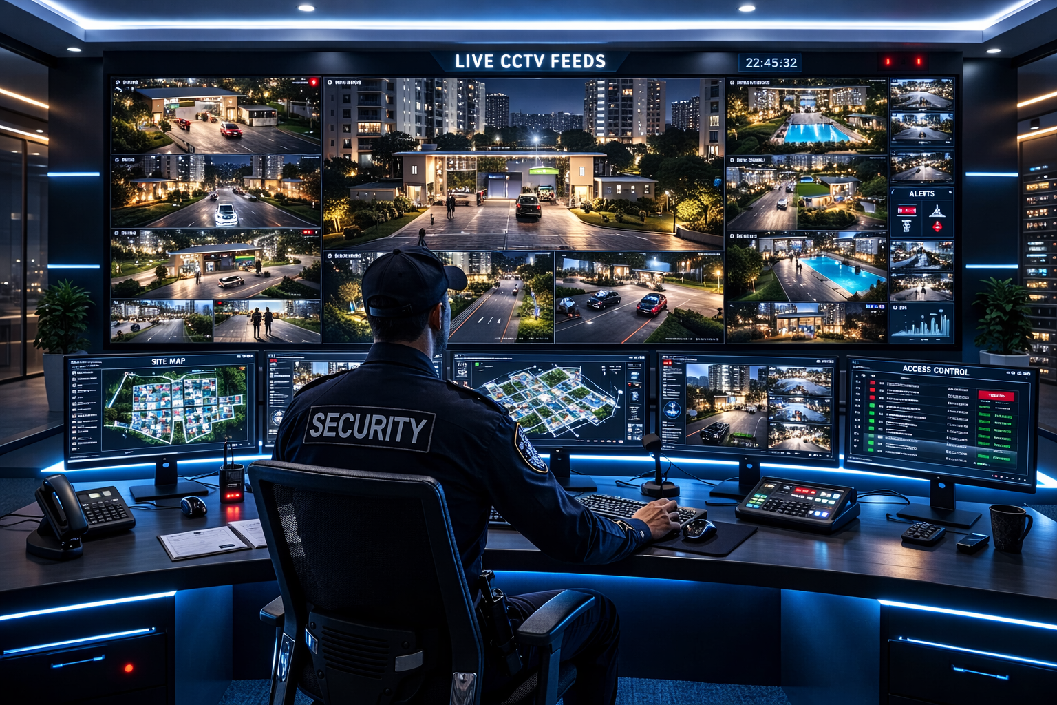 Our 24×7 security services deploy trained security personnel managing entry, exit, and perimeter safety, maintaining constant vigilance to protect residents and their property at all times.