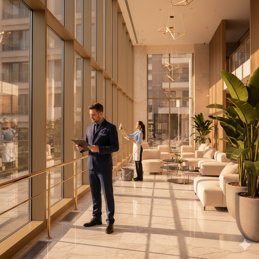 Car parking management, wash services, EV charging facilities, and move-in assistance for residents.